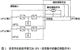 并联冗余UPS系统有两种不同的系统结构形式,即直接并联和通过并机柜并联。