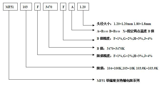 MF51-采用新工艺,新材料生产的小芯片玻璃封装型NTC热敏电阻器,具有体积小,测试精度高,反应速度快,稳定可靠,抗老化,互换性,一致性好等特点。广泛应用于空调、暖气设备、电子体温计、液位传感器、汽车电子、电子台历等领域。 2.外形结构和尺寸